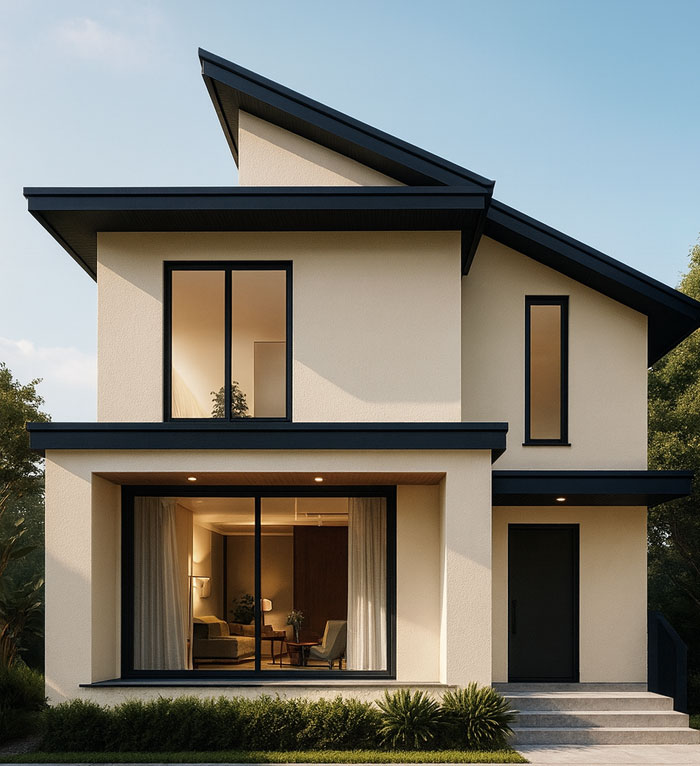 ■5位:ネイビー(ダーク)色 選ばれる理由:深みと知的さ。白とのコントラストが映える人気色。 【メリット】 アクセント(白・木目)で映えやすい 汚れよりも色ムラ/艶ムラが目立ちにくい配色が組みやすい 夜間のライトアップで美しい 【デメリット】 紫外線での退色(青→浅い青)が出やすい 夏季の表面温度上昇、補修時の色合わせ難度 向いているケース:箱型/片流れ屋根・白サッシや木調ドアでコントラストを出したい |
