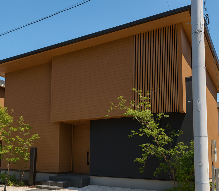 ■4位:ブラウン(モカ~チョコ)色 選ばれる理由:落ち着きと重厚感。外構の木・レンガと強い親和性。 【メリット】 低層住宅に安定感と高級感 コケや軽い埃が目立ちにくい(中明度域) ホワイト/ベージュとのツートンで引き締まる 【デメリット】 濃いブラウンは日射での退色が出やすい 全面ブラウンは暗く見え、面積効果で重たくなりがち 向いているケース:自然素材と調和させたい・和モダンが好み |