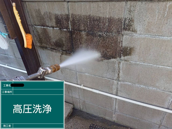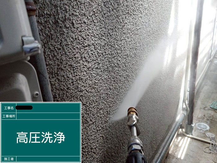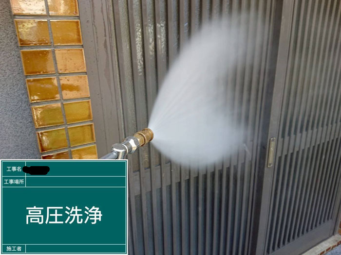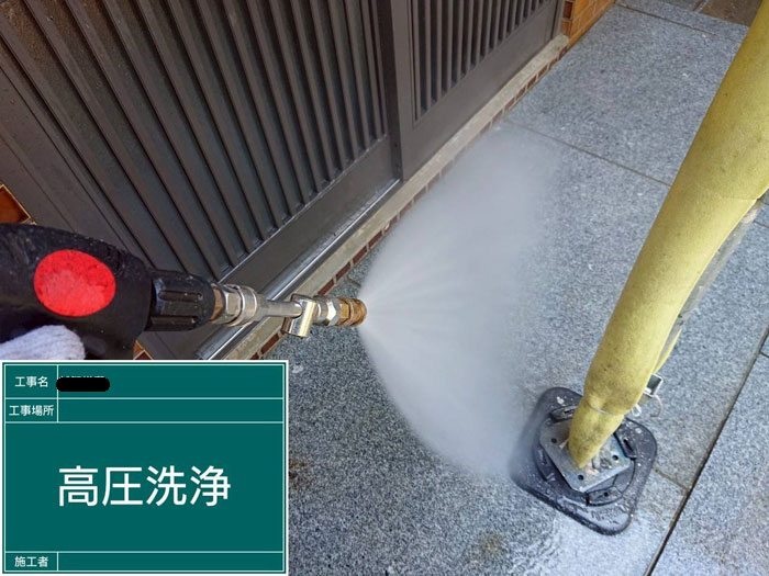 高圧洗浄は、外壁に付着したゴミを取る工事で、塗装工事の中で最も大切な工程です。