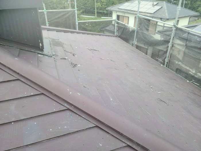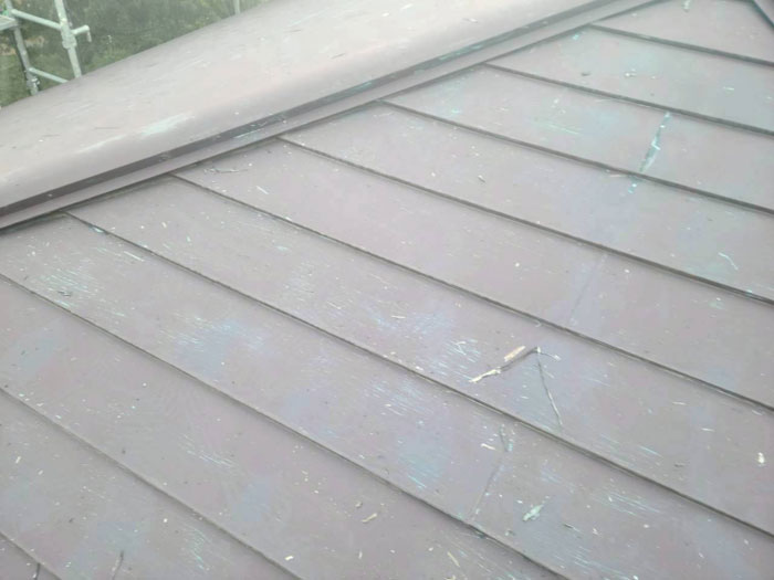 本日の作業は奈良市都祁馬場町で外壁塗装前に行います高圧洗浄と、屋根のケレン(汚れ落とし)を行いました。