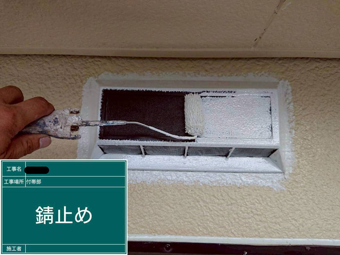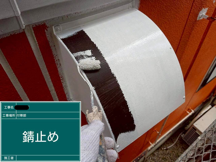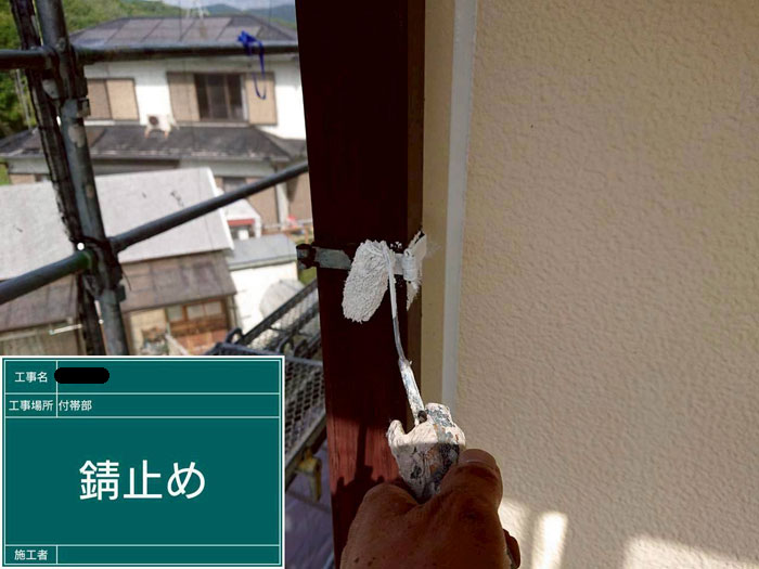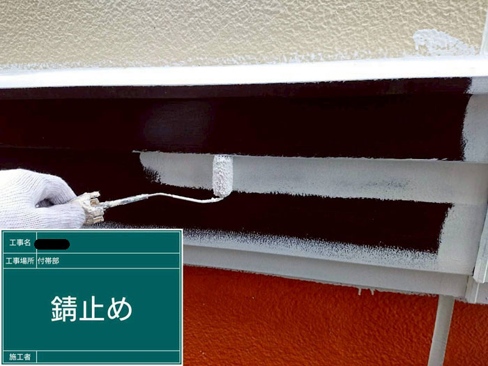 付帯部の鉄部には、仕上げの塗装前に錆止めを塗ります。