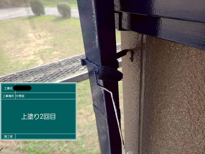 前回では、ケレン、さび止め【都祁馬場町(奈良市)で付帯部塗装前のケレン、錆止め、養生】の続きになります。