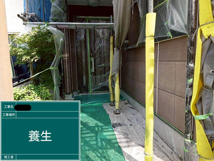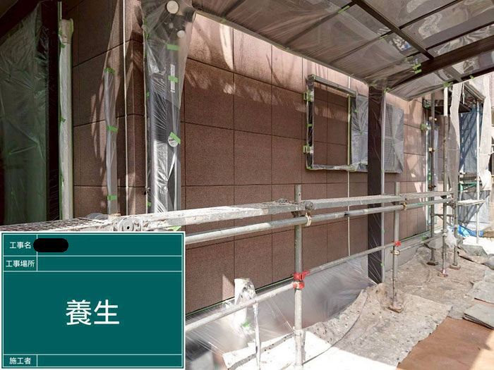 養生(ようじょう)とは、塗装しない部分を保護する作業です。