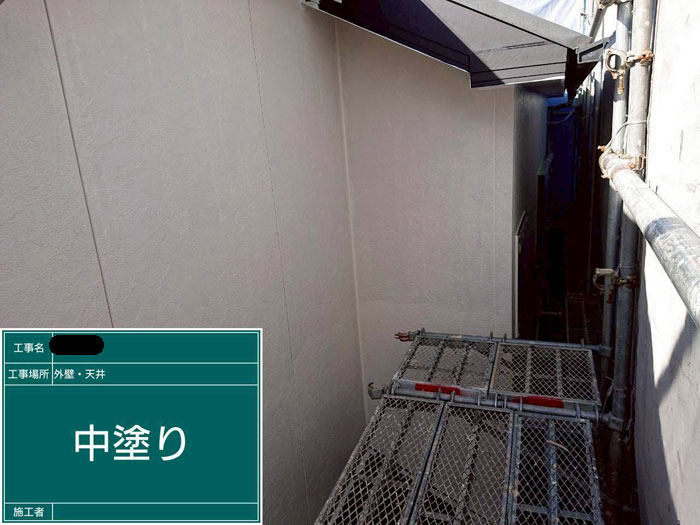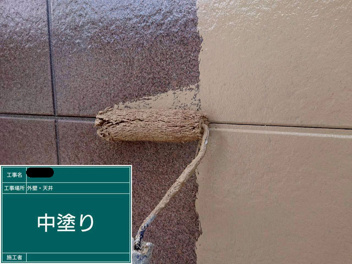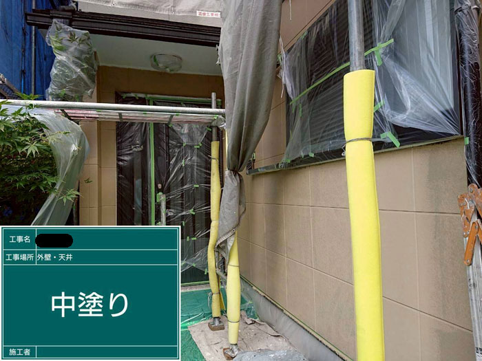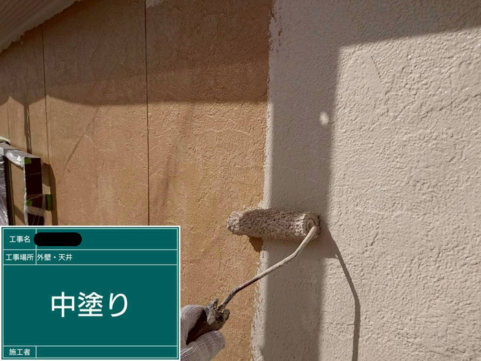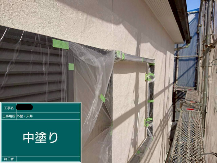 主な作業は、外壁塗装の2回目「中塗り」になります。