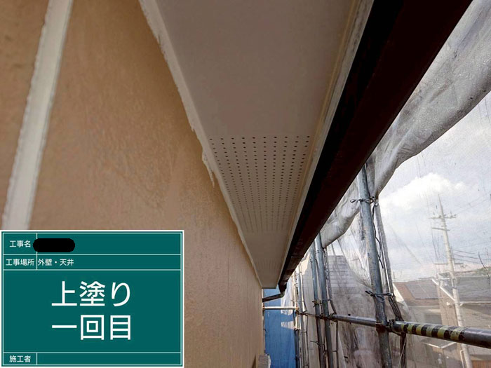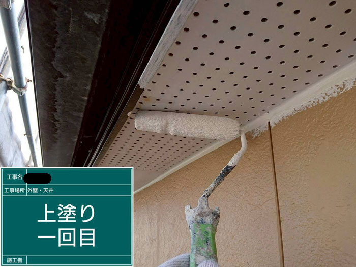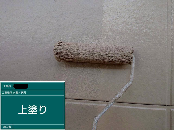 主な作業は、外壁塗装の3回目「上塗り」になります。