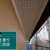 以下、生駒市で行った外壁塗装3回目「上塗り」の施工写真になります。