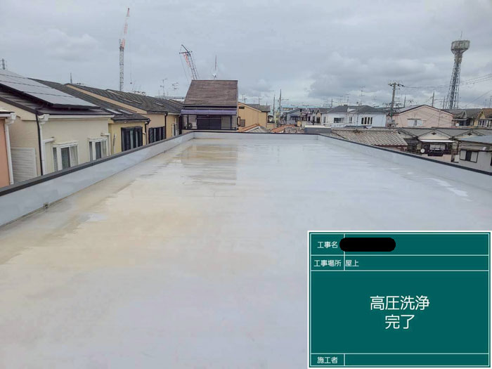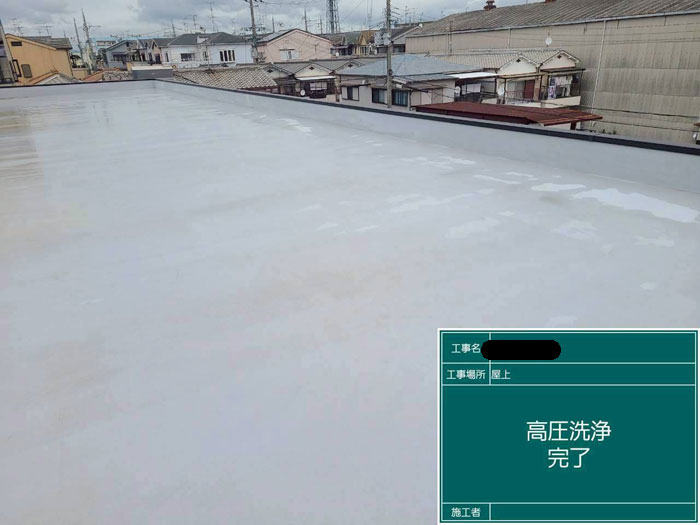 大阪府門真市で陸屋根の高圧洗浄の施工写真