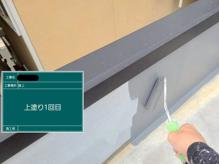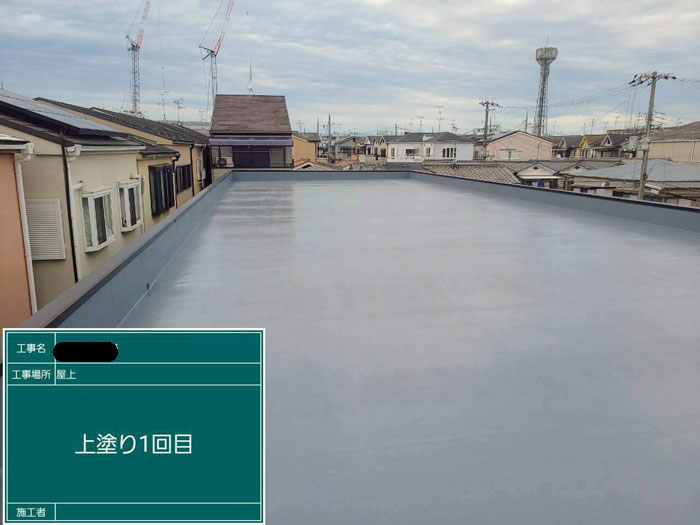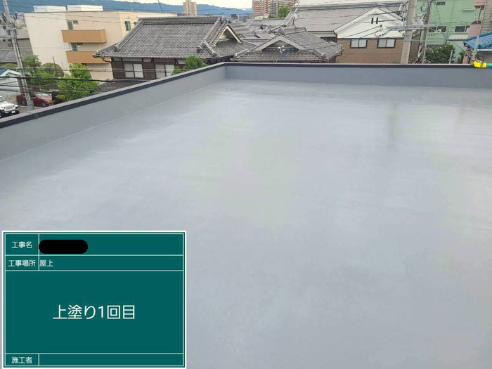 門真市で陸屋根にFRPトップコート塗布した施工写真