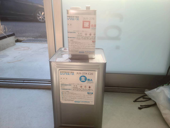 この材料は、主に屋上やバルコニーでのFRP防水(上塗り用トップコート)用途に使われています。