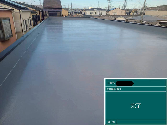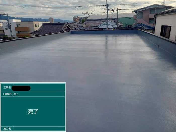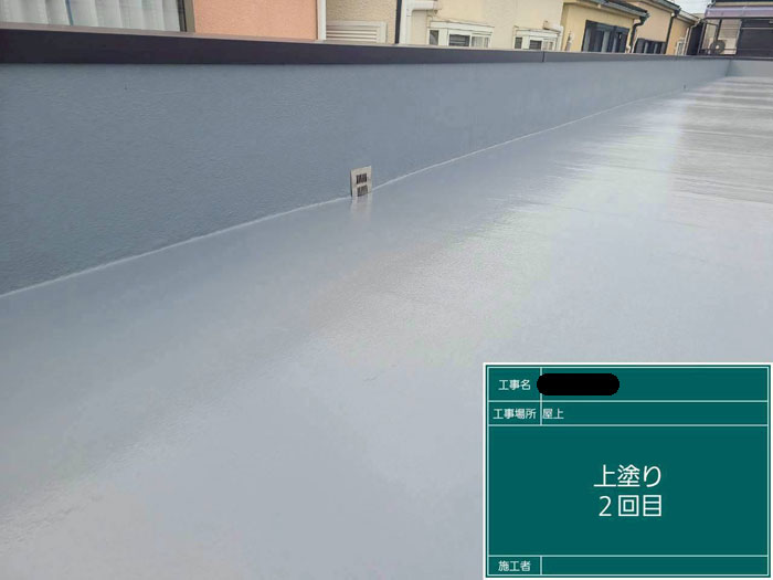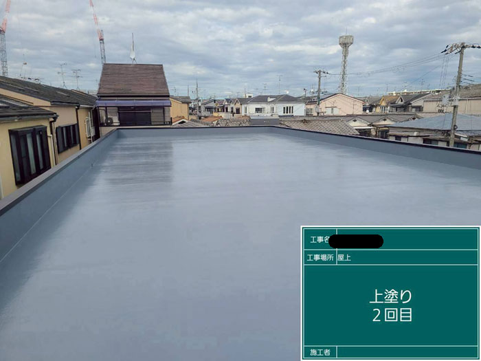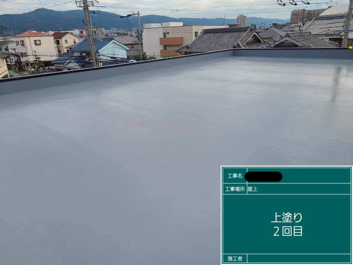 門真市で陸屋根にFRPトップコート2回目の施工写真